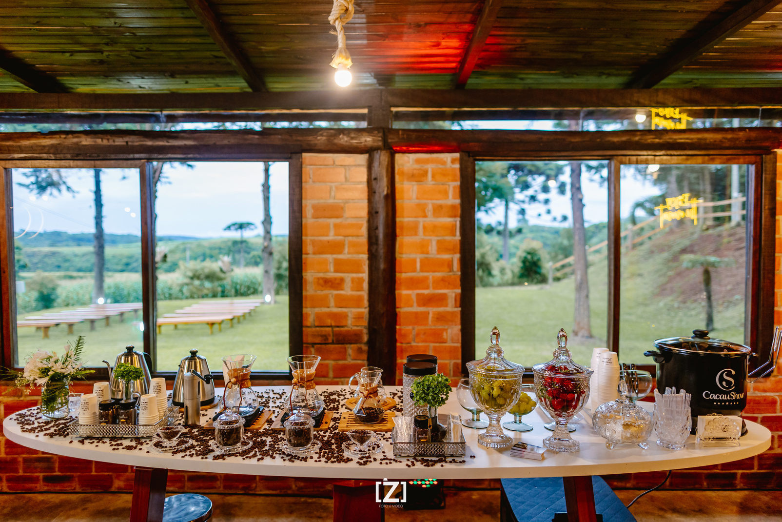 Você é nossa convidada para se preparar para seu grande dia em nossocamarim. O espaço possui um charmoso chalé, em conceito aberto, com uma área destinada para o camarim da noiva. O camarim da noiva é um espaço para proporcionar conforto e tranquilidade à noiva antes da cerimônia de casamento. Ele oferece vantagens significativas, como privacidade para os últimos preparativos, maquiagem e cabelo, troca de vestuário e momentos de relaxamento. esse espaço também pode servir como um refúgio para momentos especiais com madrinhas, familiares e amigos íntimos, criando memórias inesquecíveis antes de dizer "sim".