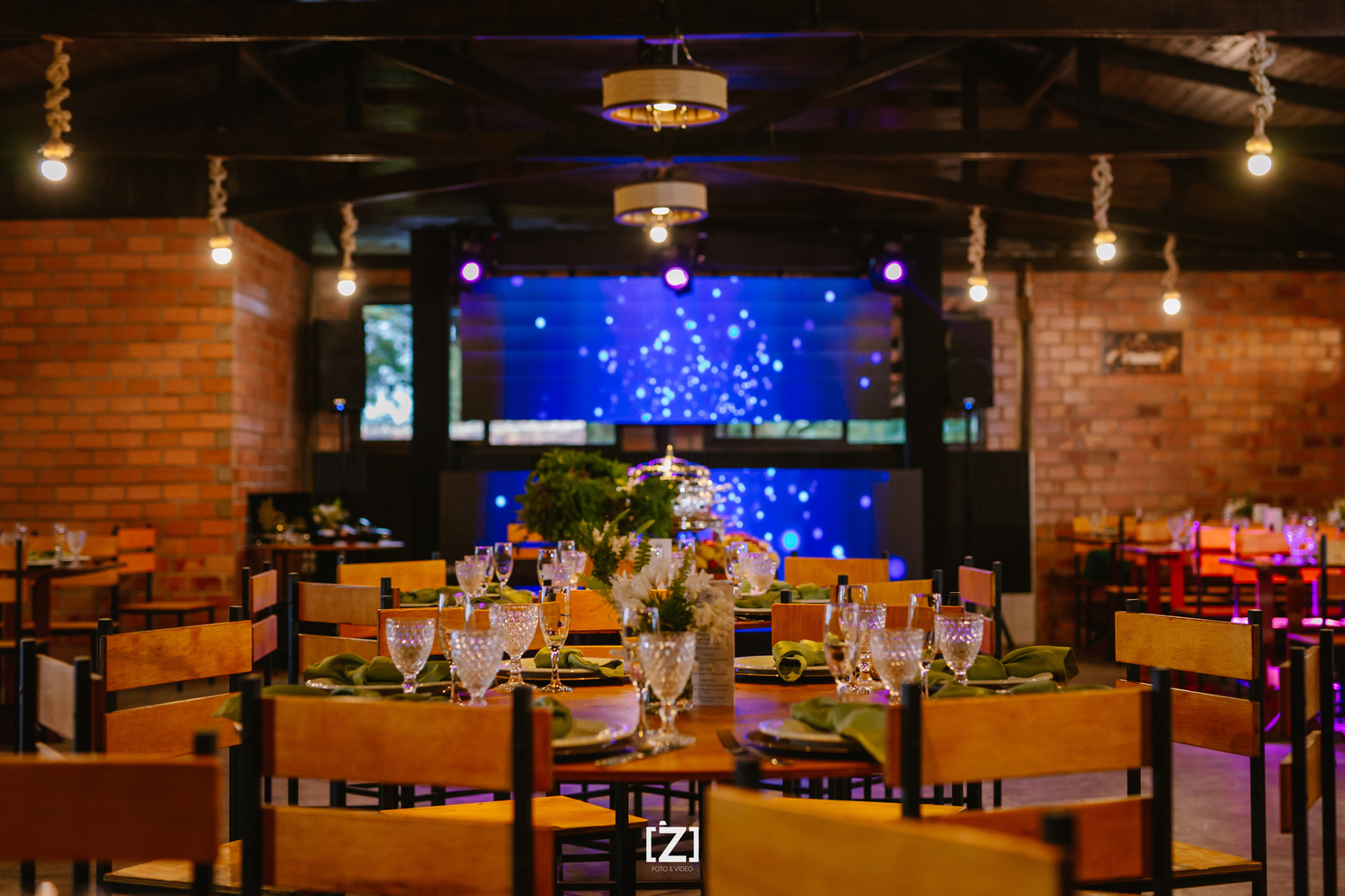 •Salão com capacidade máxima para 150 pessoas, integrado com a natureza.